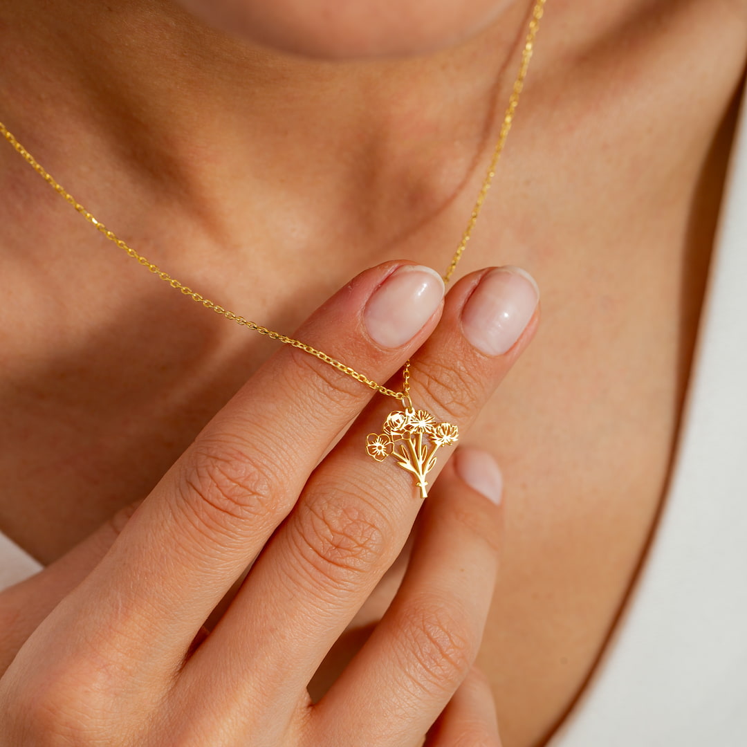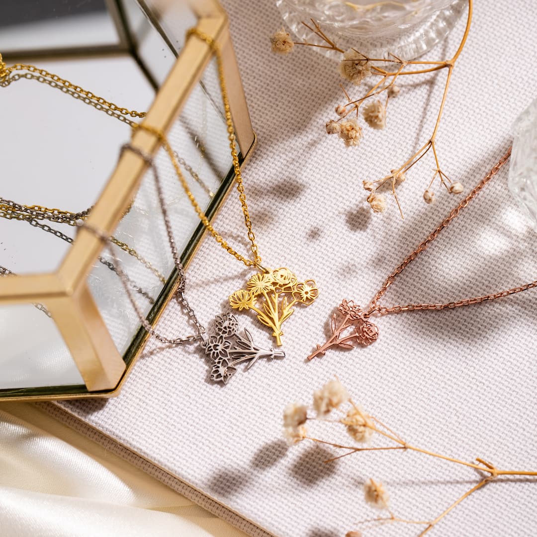 Celebrate the people you love with our Charm Necklace. Featuring a unique design, each flower represents a birth month, allowing you to personalize it with the birth flowers of your family and friends.