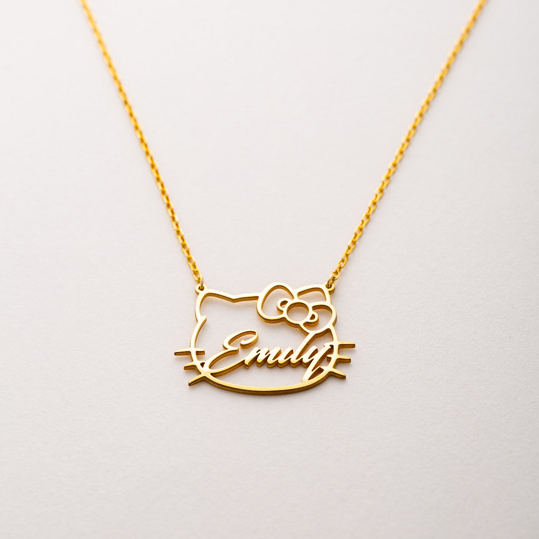 Keep your furry friend close to your heart with this custom Cat Face with Name Charm Necklace. Featuring a delicate outline of a cat’s face with their name artfully woven into the design, it’s the perfect tribute to your beloved pet. A thoughtful gift or personal keepsake, this Charm Necklace celebrates the unique bond between you and your kitty.