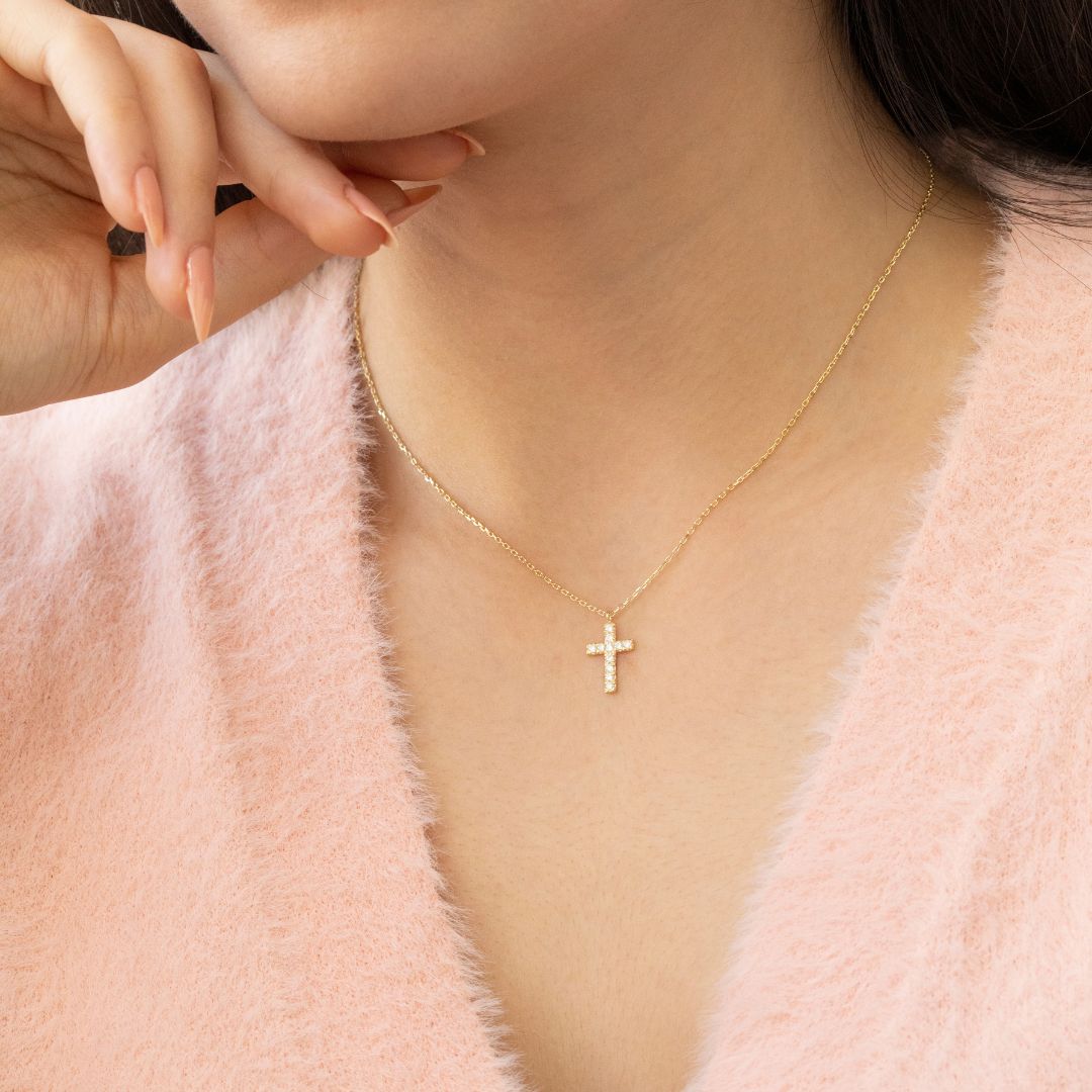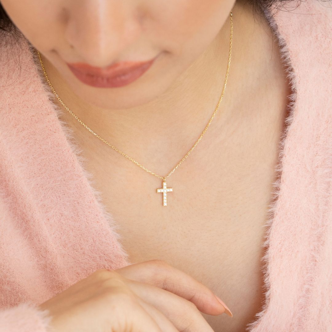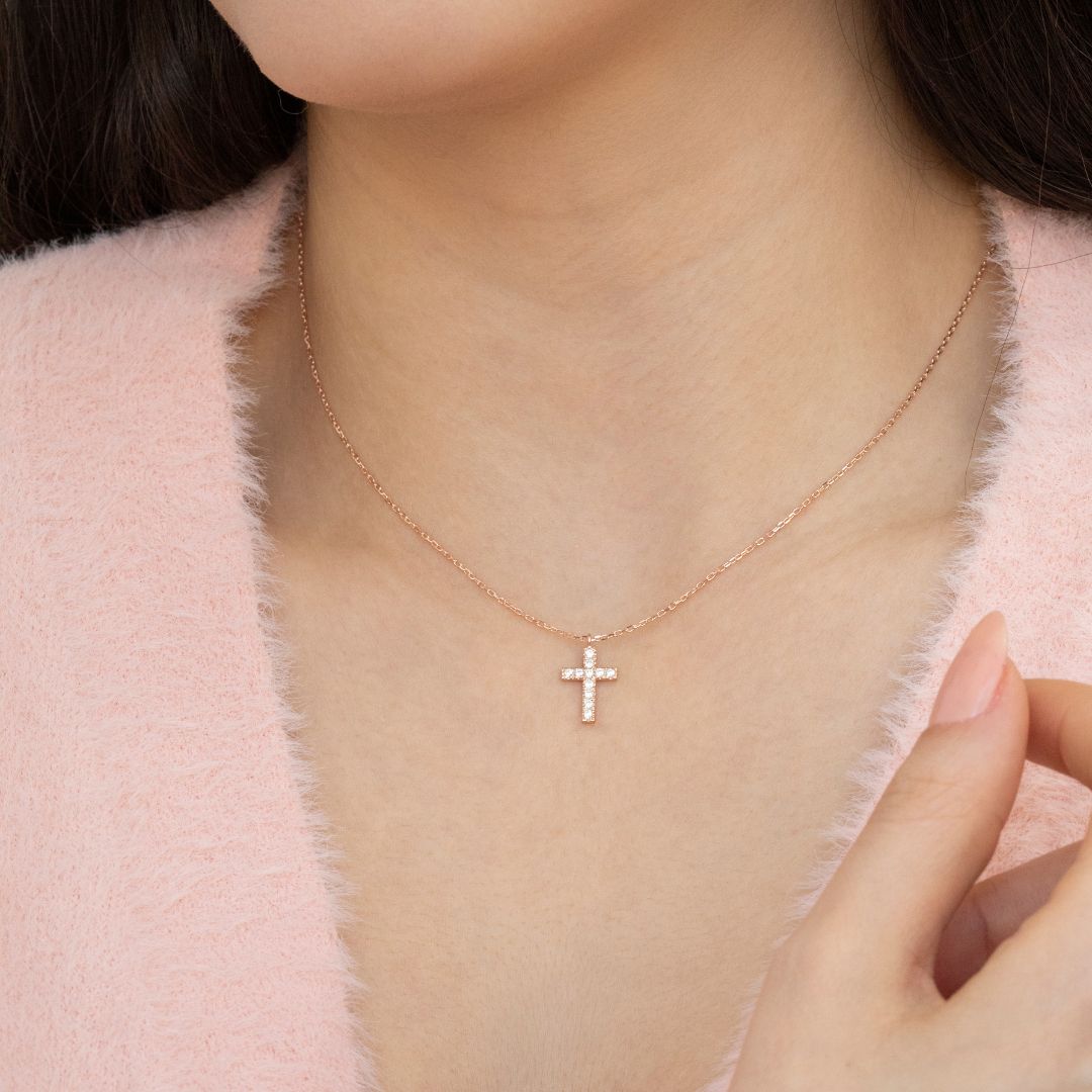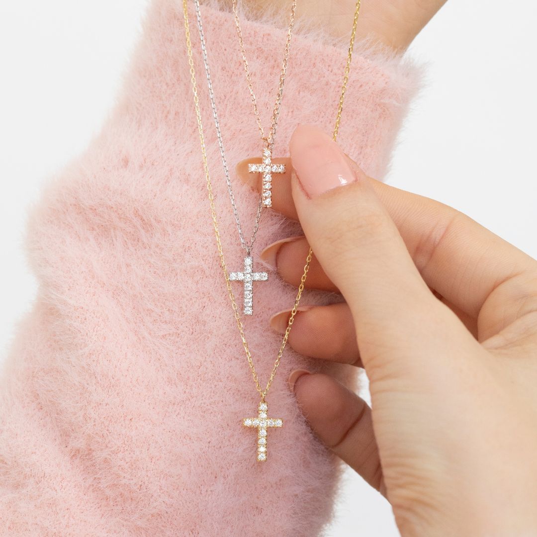 Crafted from solid sterling silver, the Charm Necklace features a beautifully designed cross pendant with embedded diamonds. The cross measures 13mm in height and 8mm in width, creating a striking yet elegant statement piece that celebrates faith and devotion. Available in gold and rose gold plating options over the solid 925 sterling silver, this necklace is designed to last a lifetime.