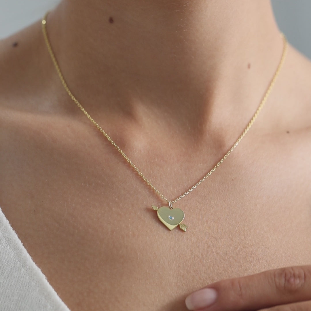 This personalized heart and arrow necklace is a timeless symbol of love, connection, and commitment. Designed with a sleek heart pendant pierced by a delicate arrow and accented with a sparkling birthstone, this piece is made to tell your story.