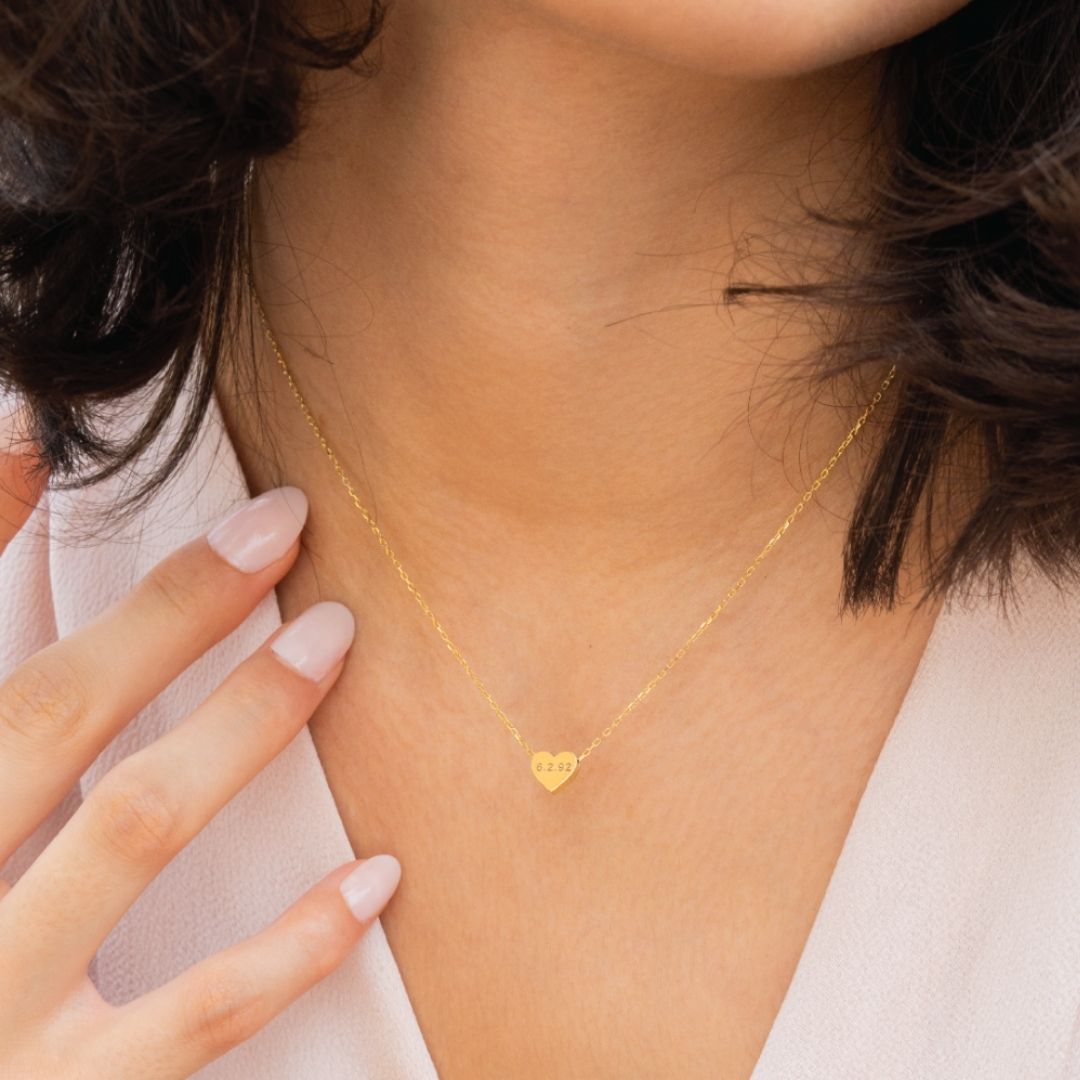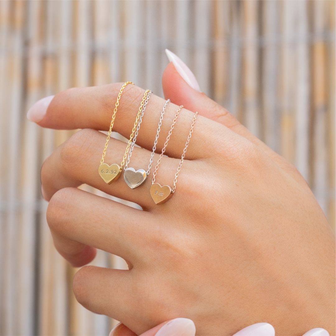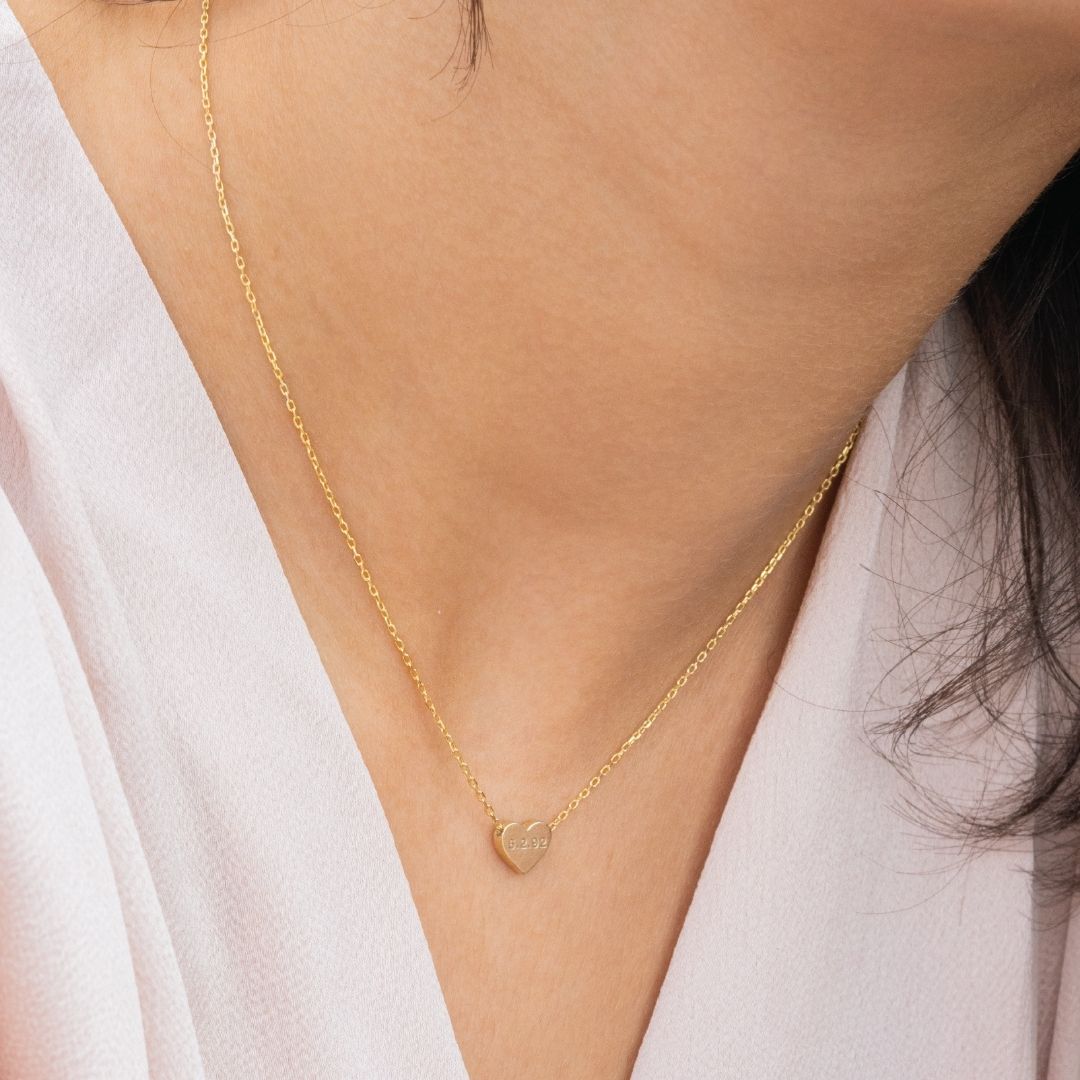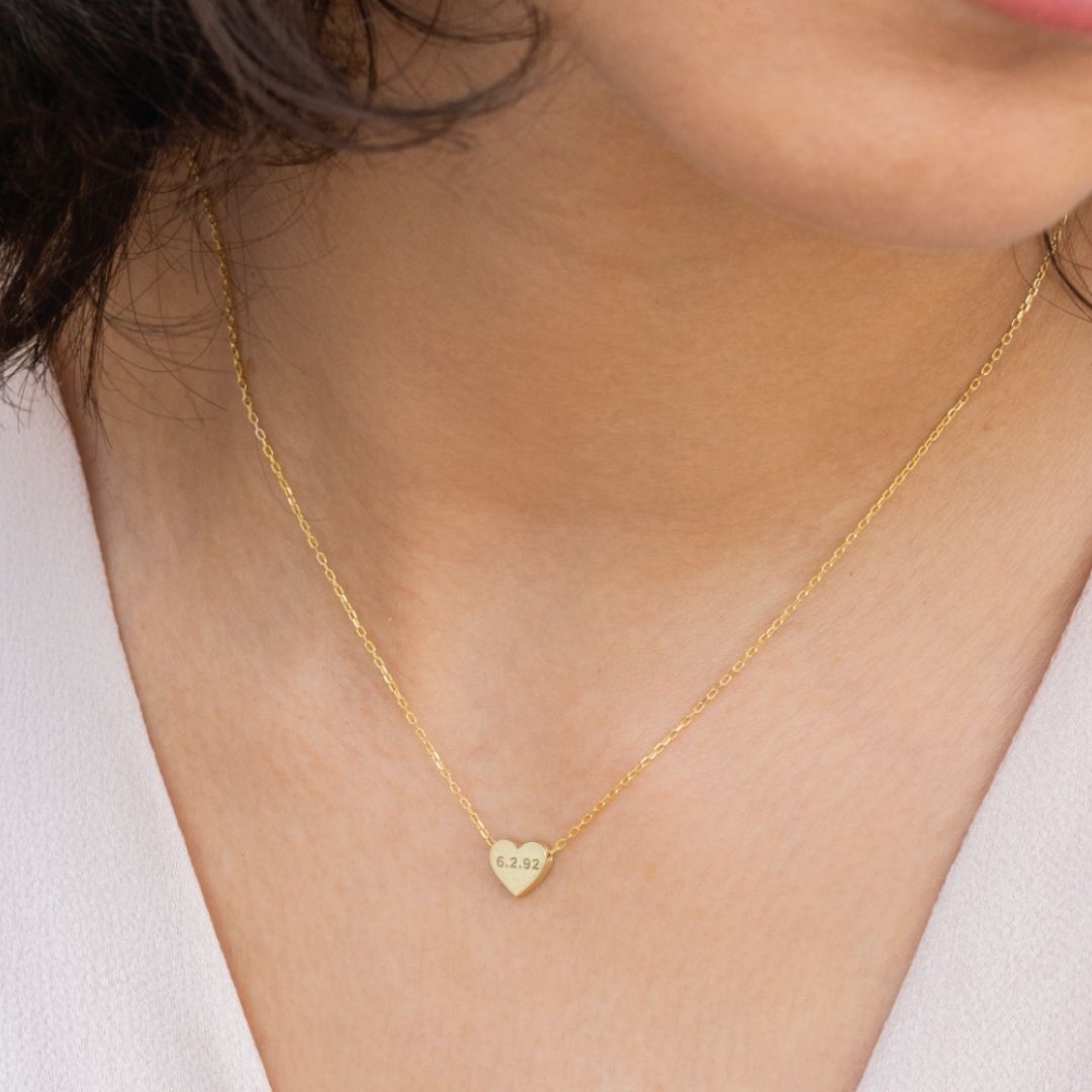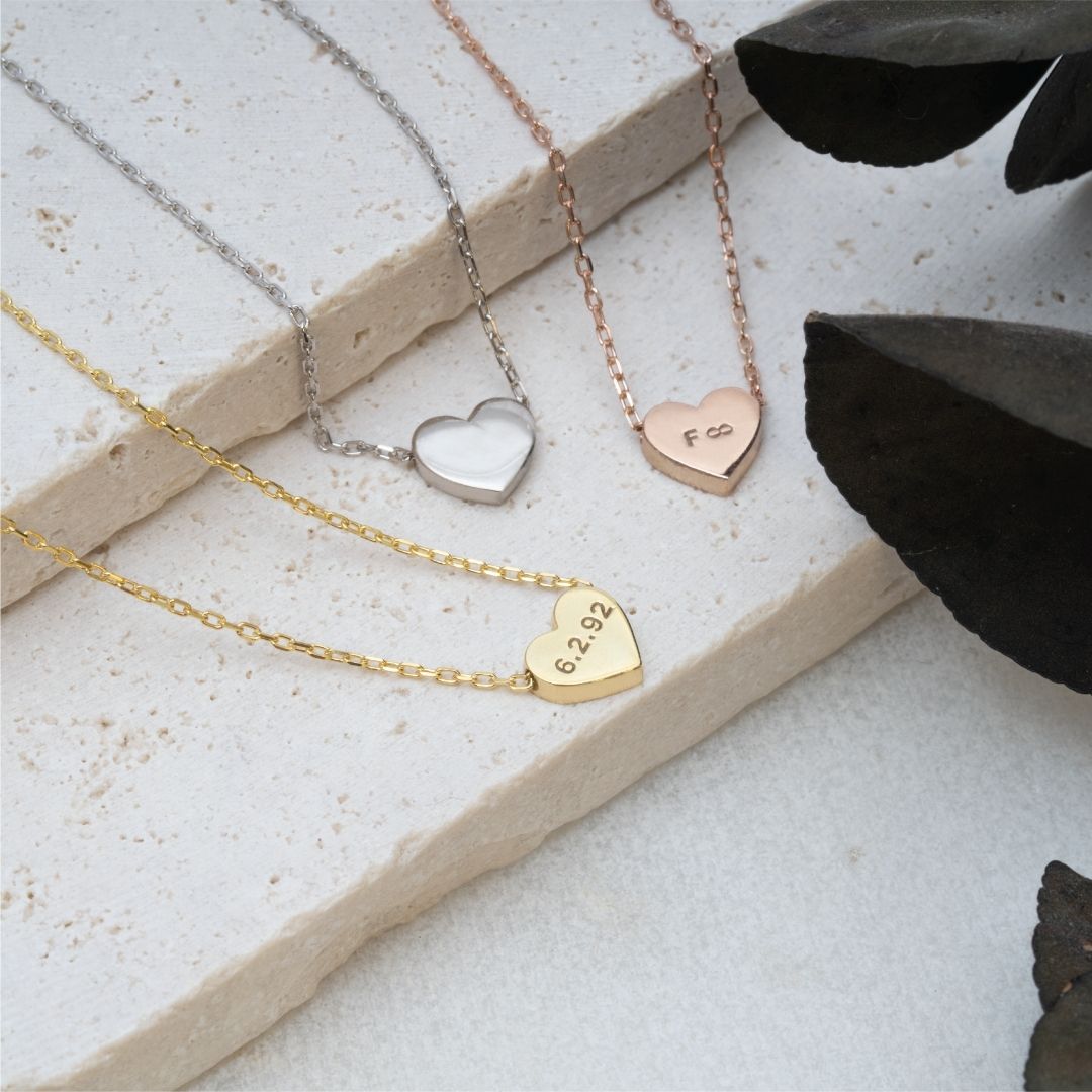 Turn an ordinary jewelry piece into an everlasting keepsake with our Engraved Heart Charm Necklace. This heart-shaped pendant can be custom engraved with dates, names, or symbols, making it a unique and personal piece. Each time you wear this pendant, it will transport you back to the special moments that have defined your life. It offers a lovely means to express affection, mark important achievements, and show reverence for the most meaningful connections.