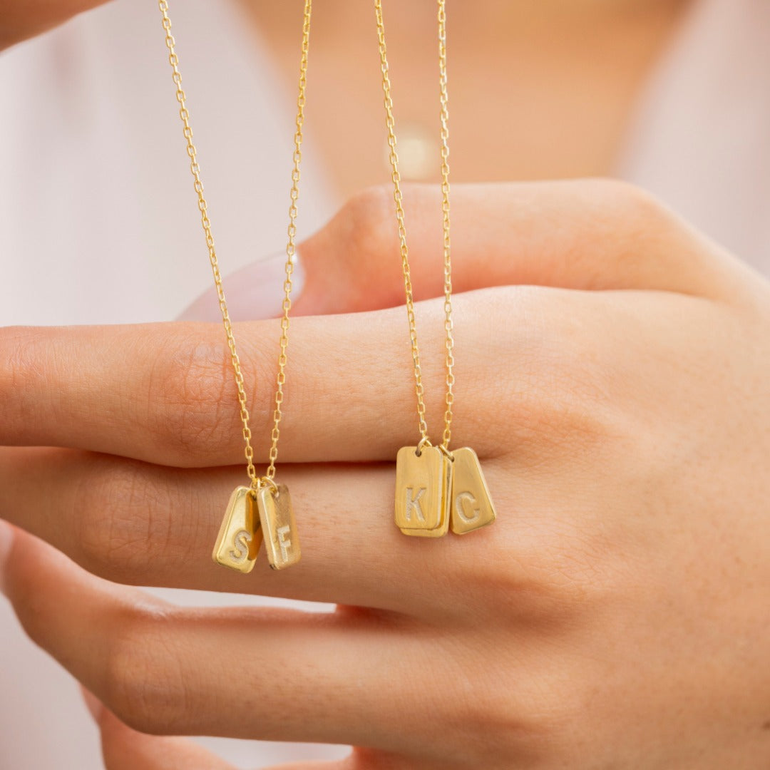 Handcrafted with precise care, this Charm Necklace features multiple bars, each expertly engraved with the initials of your choice. Whether it’s your own initials, a loved one’s, or a special someone, this necklace becomes a meaningful symbol of connection, representing the bonds that matter most.