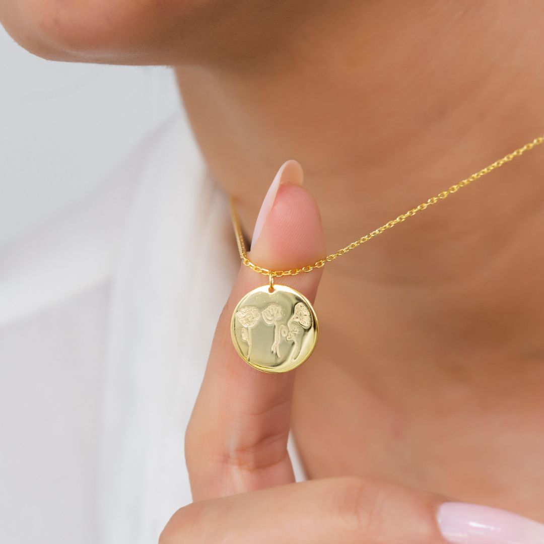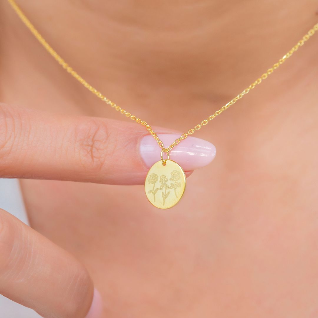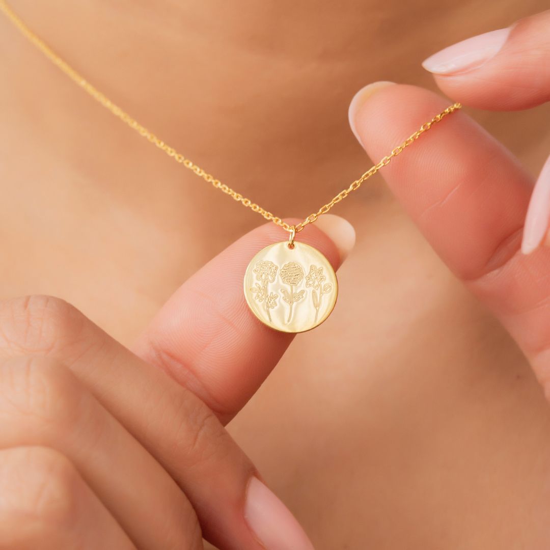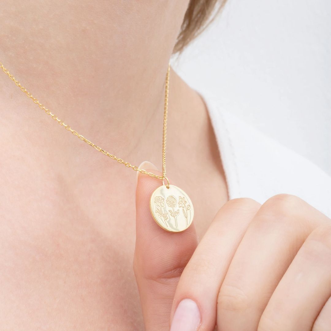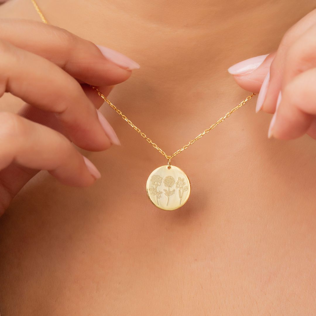 Custom Disk Necklace with Birth Flower Botanical Beauty