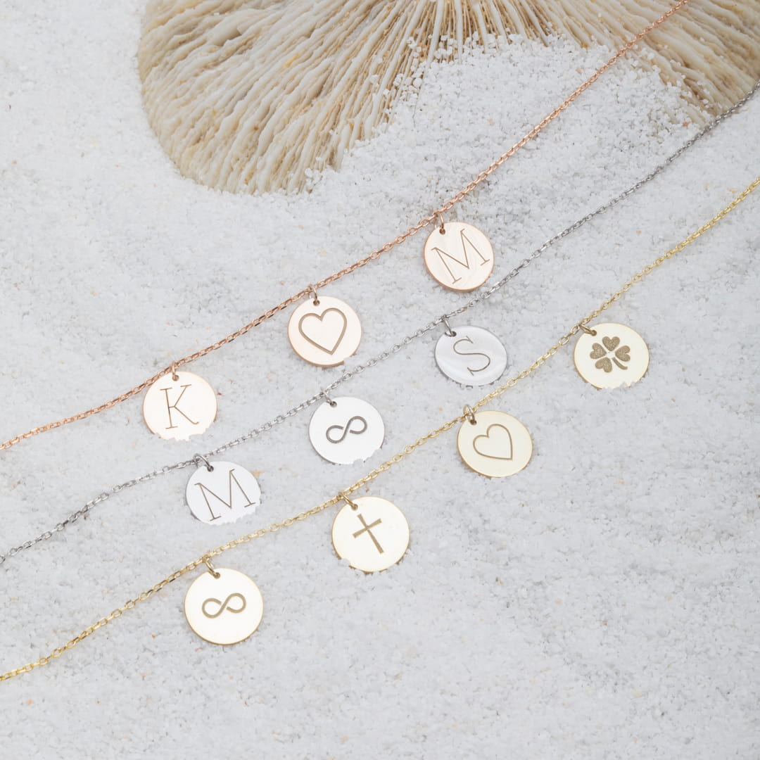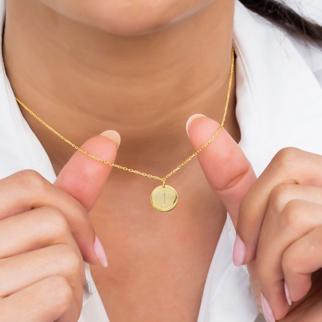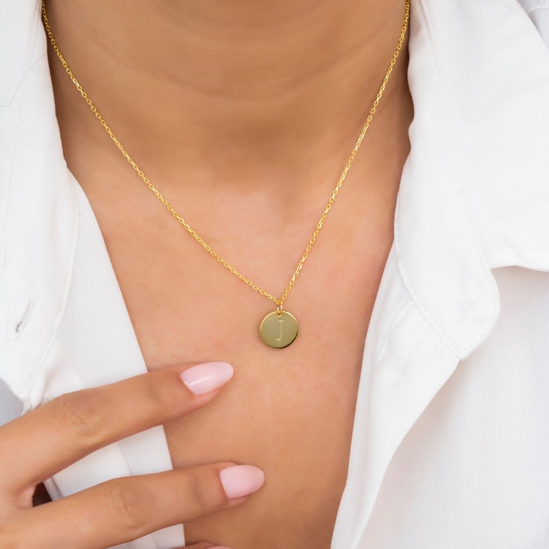 Crafted from solid 925 sterling silver, the Personalized Initial Disk Charm Necklace is available in both gold and rose gold plating options. The pendant is beautifully engraved with the initial of your choice, making it a unique and meaningful gift that will be cherished for years to come.