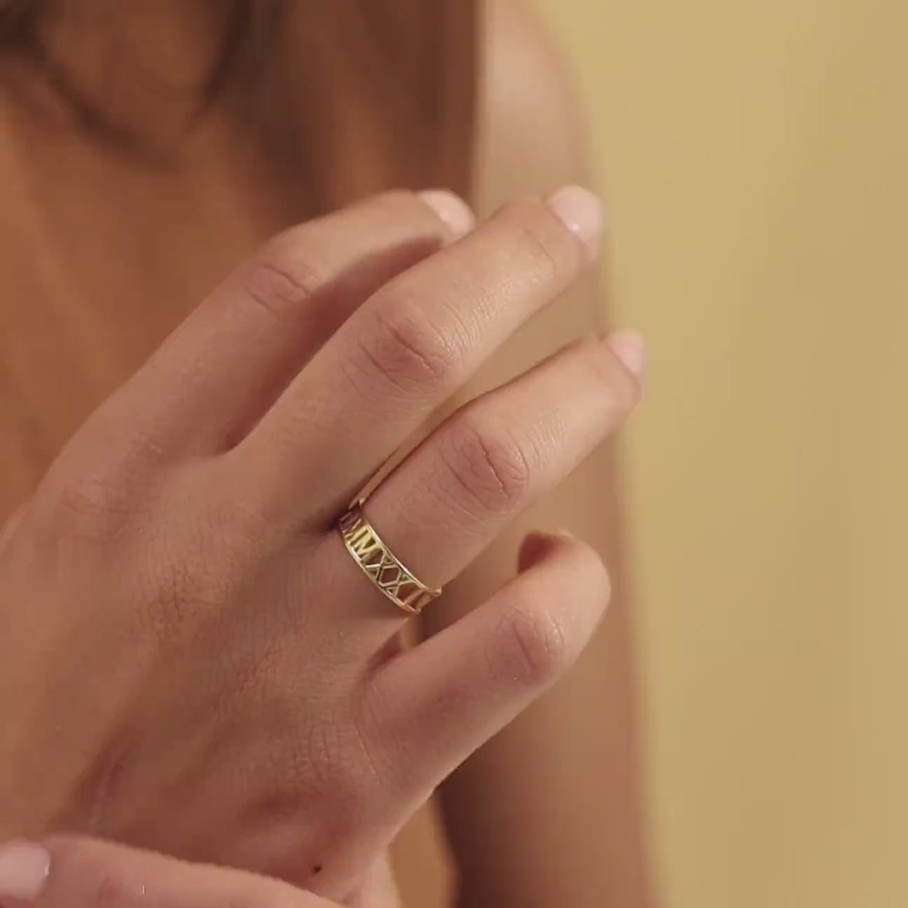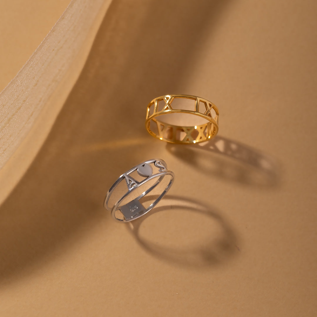 This Roman Numeral Cutout Band Ring is a timeless way to personalize a meaningful moment. Designed with a sleek openwork style, the band can be customized with a special date, Roman numerals, initials, or a short word, creating a piece that’s uniquely yours.